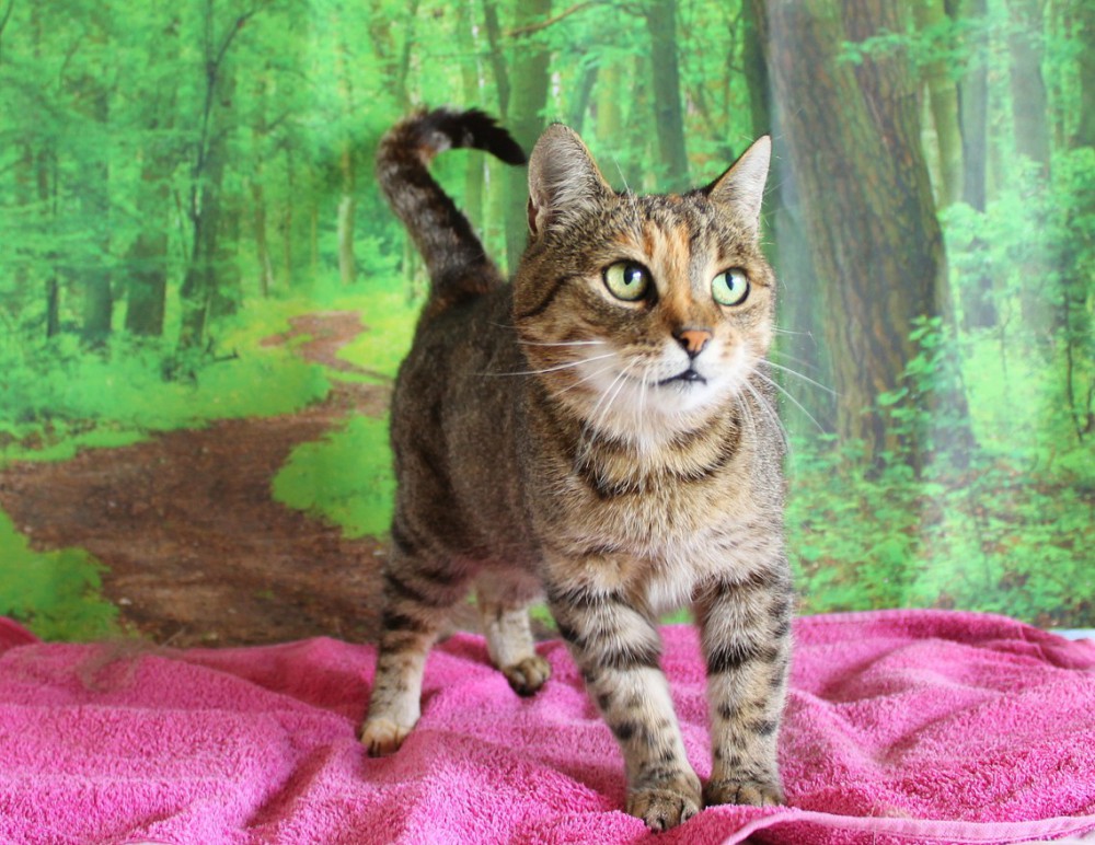 Nádherný, asi půlroční kocourek, nalezený na Sv. kopečku. Nějakou dobu pobýval na veterině u MVDr. Tesaříkové. Je velice temperamentní, hravý a komunikativní. Je to takový demoliční lump. Potřebuje velký prostor a do rodiny k větším dětem. Je většího, silného vzrůstu, někdo z rodičů patřil asi k rase velkých koček. Potřebuje co nejdříve nový domov, v kleci je nešťastný.