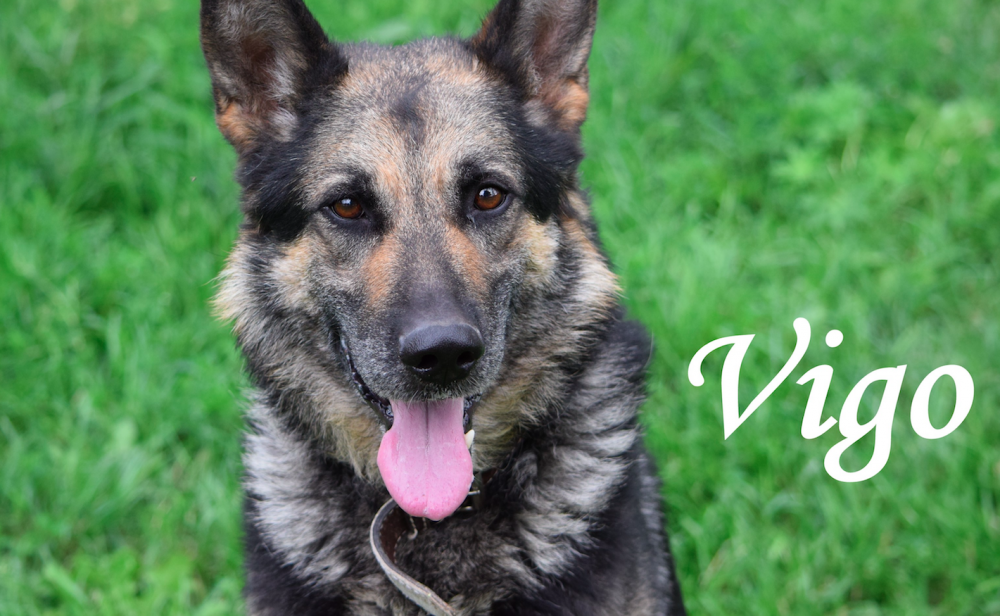 Vigo je zhruba pětiletý německý ovčák. Je to hodný, ale zpočátku trochu bázlivý pes. Umí základní povely, je hodně aktivní, miluje procházky a piškoty.