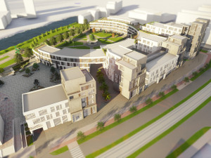 V pěti nových budovách, z nichž čtyři budou postaveny do kruhu, mají být kanceláře, multifunkční hala, podzemní parkoviště, služby, ordinace i restaurační zařízení. Součástí areálu bude náměstí a odpočinková zóna se stromy a zelení.