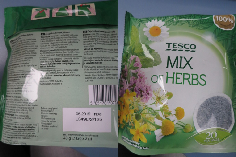 SZPI zjstila přítomnost uvedených látek v porcovaném bylinném čaji s názvem Tesco Mix of Herbs, který prodávala distribuční sít společnosti Tesco Stores.