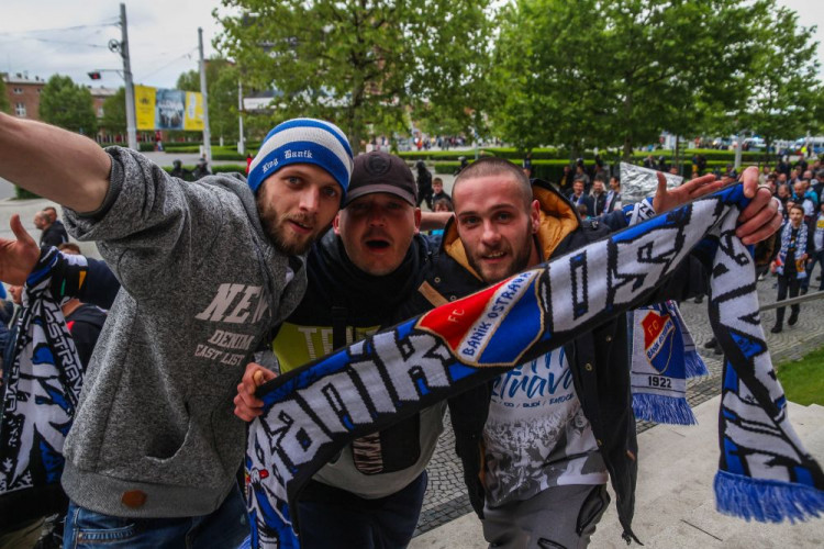 FOTOGALERIE/VIDEO: Pochod městem i povedená chorea. Fanoušci Slavie a Baníku obsadili Olomouc
