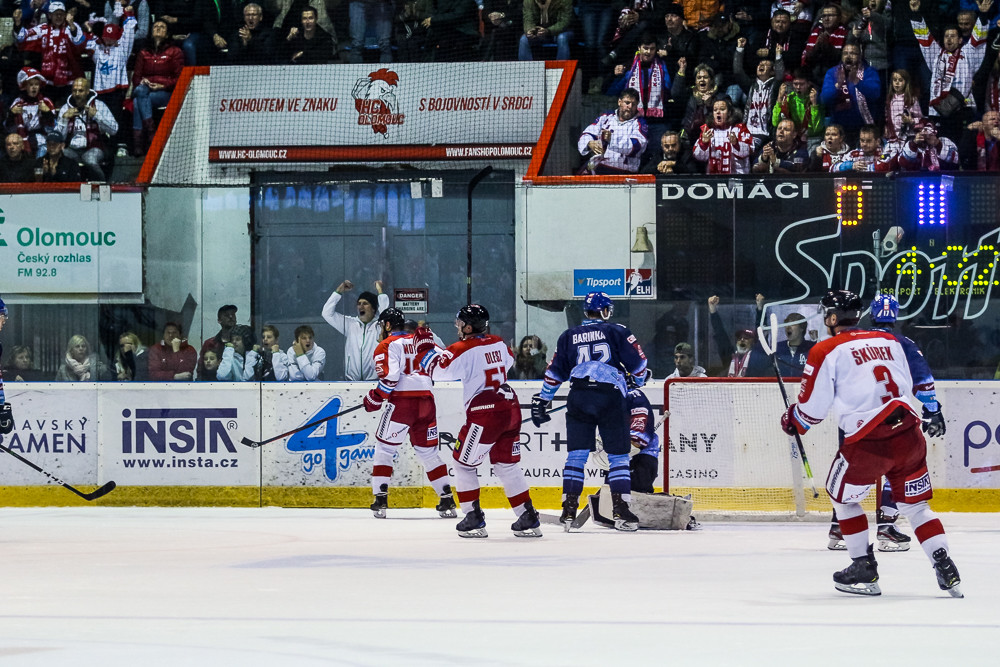 FOTOGALERIE: Vyprodaná plecharéna v Olomouci sledovala prohru Kohoutů s Jágrovým Kladnem