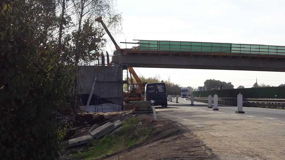FOTO/VIDEO: Stavba mostu nad dálnicí mezi Olomoucí a Prostějovem nabírá zpoždění