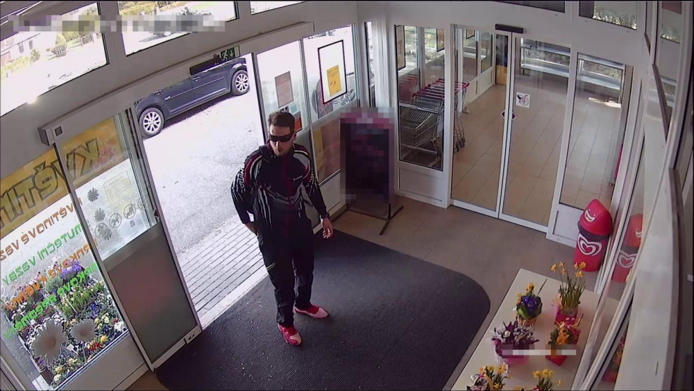 Neznámý muž chtěl v dubnu letošního roku zaplatit nákup bankovkou nominální hodnoty dva tisíce korun v prodejně potravin v obci Nový Malín na Šumpersku. „Obsluha pokladny při platbě rozpoznala, že se jedná o padělanou bankovku, kterou zadržela, a muž následně z prodejny odešel. Muž k prodejně přijel a následně i odjel na horském jízdním kole tmavé barvy s kotoučovými brzdami. Byl oděn do cyklistického oblečení tmavé barvy s bílými a červenými pruhy. Na rukávech dresu měl bílé nápisy Shimano. Cyklista měl na nohou výraznou červeno bílou zřejmě cyklistickou obuv, na zádech batoh a přes oči černé sluneční brýle,“ uvádí popis hledaného muže tiskový mluvčí Libor Hejtman.