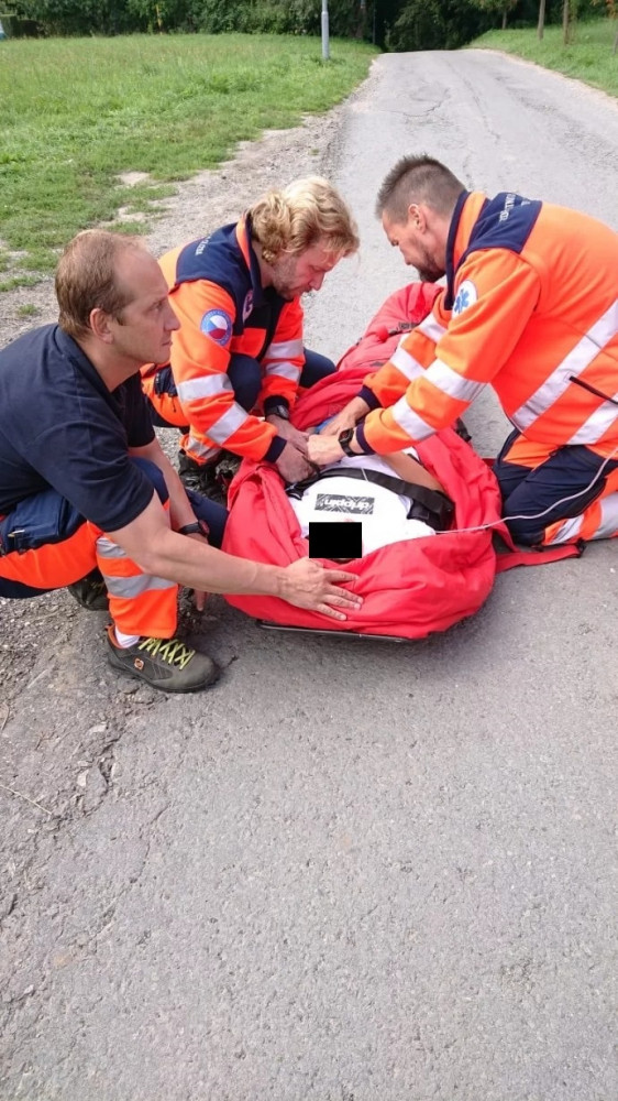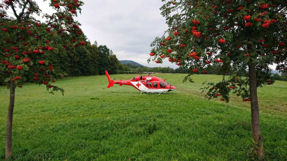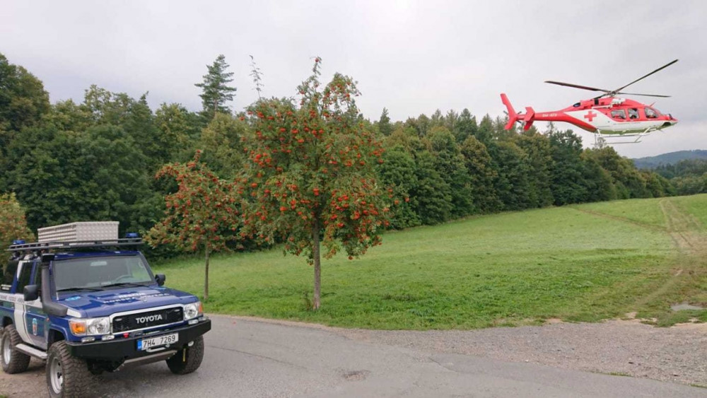 Členové HS pak zraněného převezli asi dva kilometry k louce, na které mohl přistát vrtulník LZS.