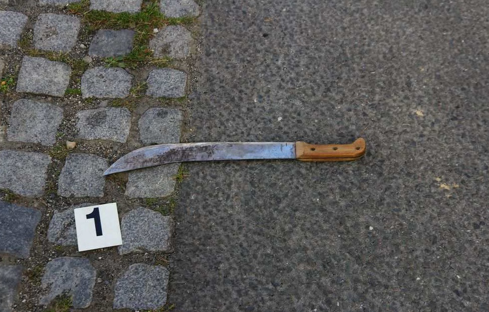 „Vytáhl na něj z podomácku vyrobeného pouzdra mačetu (s 39 centimetrovou dlouhou čepelí). Tou se rozpřáhl nad hlavou a za současného vyhrožování zabitím pokračoval k policistovi. Zastavila ho až policistova namířená střelná zbraň a jeho opakovaná výzva, aby v útoku nepokračoval a mačetu odhodil,“ popsala neobvyklou událost Jiřina Vybíhalová, která dodala, že incident se obešel bez zranění.