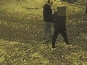 „Policistům se podařilo zajistit kamerové záznamy, na kterých je zachycena skupinka lidí, která prochází parkovištěm. Jedním z nich je i muž podezřelý z napadení dvou mužů. Má na hlavě modrou kšiltovku s bílým čelem, na kterém je červené písmeno „C“,“ popisuje policejní mluvčí Irena Urbánková.