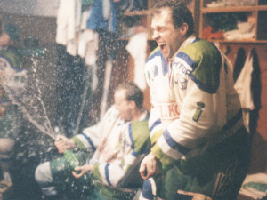 Štítky sport, hokej, titul, oslavy, mistři, 1994, Olomouc