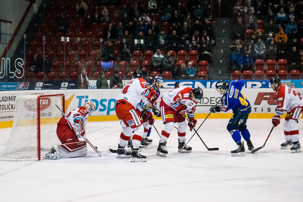 První šanci druhé třetiny měli hosté, Kratochvilovu střelu Konrád efektivně ukryl v lapačce. Velká mela se strhla před Kašíkovou brankou poté, co mu vypadl puk z výstroje a olomoučtí hráči se jej neúspěšně pokoušeli dostat do branky. Blíže k třetí brance byli domácí po přečíslení dvou proti jednomu, když Musil trefil tyč.