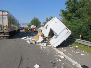Nehoda nákladního auta s osobním se stala včera kolem šestnácté hodiny. Alkohol u obou řidičů policisté vyloučili.