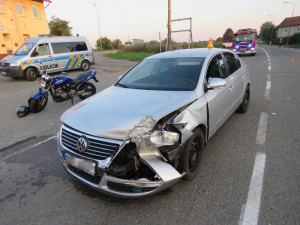 V ranních hodinách se v okolí Prostějova staly dvě dopravní nehody. Došlo ke střetu motorky s osobním vozem a o půl hodiny později nezvládl jiný motocyklista řízení a dostal smyk. Jen v druhém případě utrpěl řidič lehká zranění.