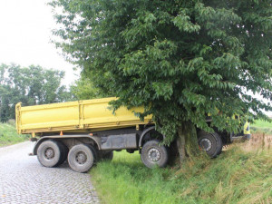 Včera 20. července odpoledne došlo na Prostějovsku mezi obcemi Výšovice a Bedihošť k havárii nákladního automobilu značky Volvo. Třicetiletý řidič zřejmě nepřizpůsobil svou rychlost stavu vozovky.