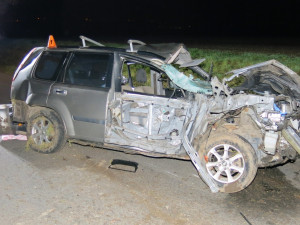 Nehodou skončila jízda osmnáctiletého řidiče nissanu, který jel směrem od Vrahovic na Vrbátky. Při průjezdu táhlou zatáčkou vybočil ze svého jízdního pruhu a narazil do předního kola protijedoucího traktoru. Všichni z auta byli převezeni k ošetření...