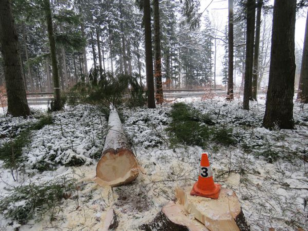 Devětačtyřicetiletý těžař kácel strom vedle silnice. Strom podle policie při pádu změnil směr a dopadl na silnici, na místo, kam přijíždělo osobní auto. Řidič na tuto nenadálou situaci nezvládl zareagovat, do stromu narazil a přejel ho.