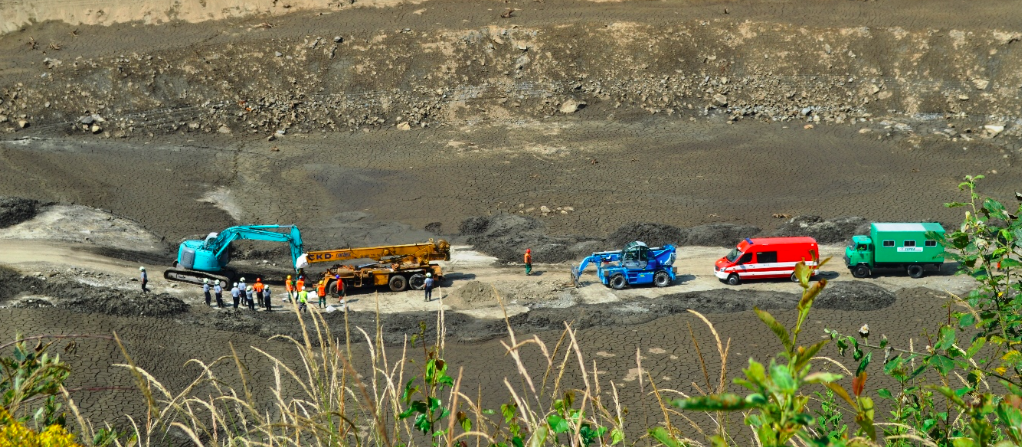 Pracovníci odborných firem, které měly práce na starost, posunuli jeřáb na rovnou plochu, uřezali rameno jeřábu a tělo jeřábu pak na původním podvozku odtáhli a odtlačili po dně nádrže až k příjezdové cestě, kde byl vrak naložen na valník.