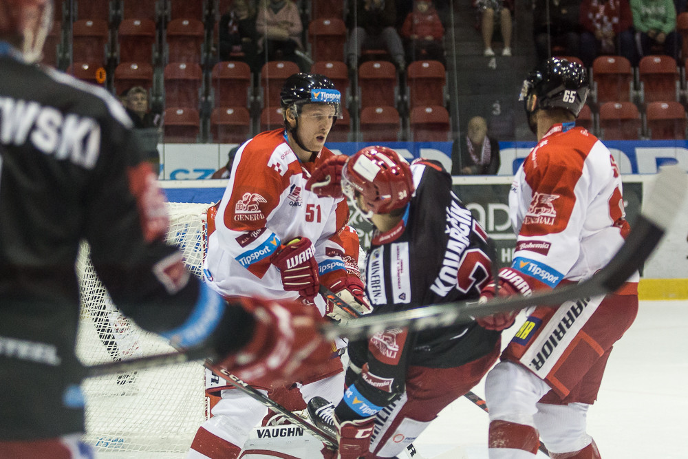 Hokejisté Olomouce podlehli v 15. kole extraligy doma Třinci 3:6 a počtvrté za sebou nebodovali. Oceláři naopak bodovali počtvrté v řadě a z toho potřetí vyhráli. V dresu vítězů ozdobil návrat do sestavy po jednozápasové absenci třemi body za gól a dvě asistence nejproduktivnější obránce soutěže Lukáš Krajíček.