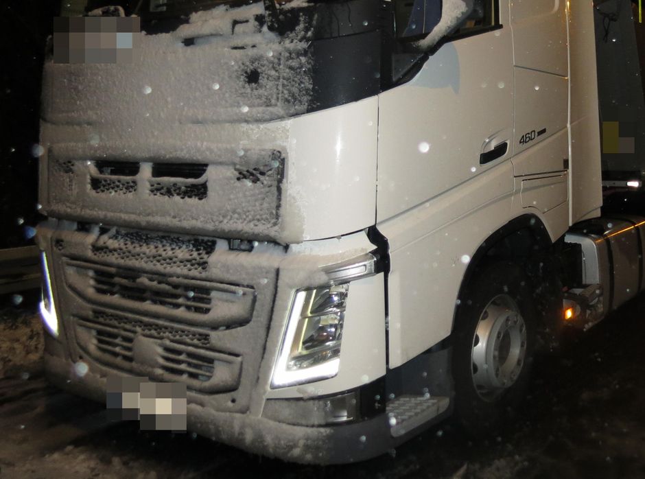 Jedenadvacetiletý řidič dostal na zasněžené silnici smyk a přejel do protisměru, kde se střetl s náklaďákem. Při nehodě se nikdo nezranil a stejně tak bylo vyloučeno, že by před jízdou některý z řidičů pil. Policie zjistila, že osobní auto bylo obuto na letních pneumatikách, jeho řidič navíc nepředložil řidičský průkaz a vozidlo bylo vedeno jako nepojištěné.