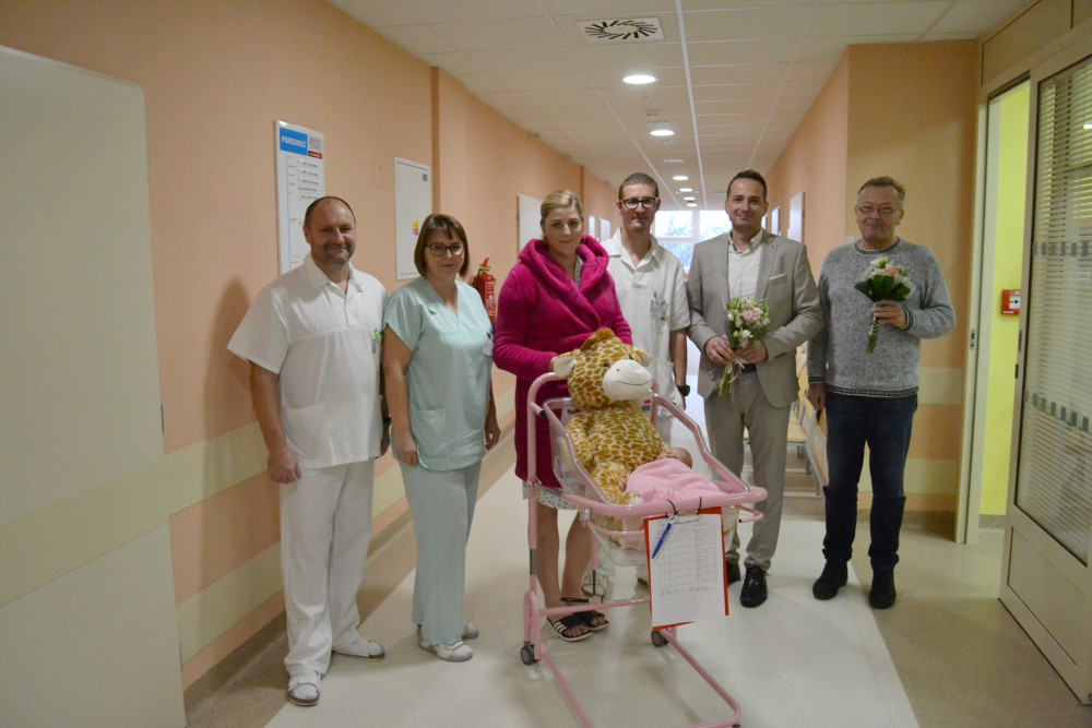 Jubilejní mamince pogratuloval ředitel nemocnice i starosta