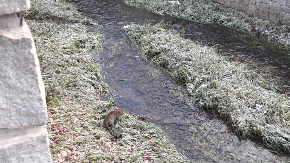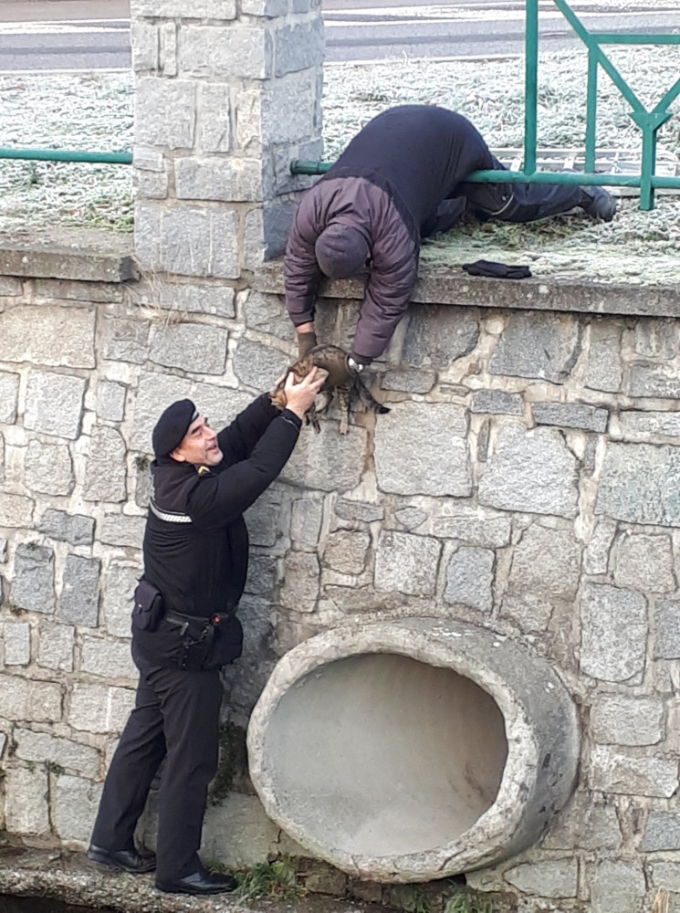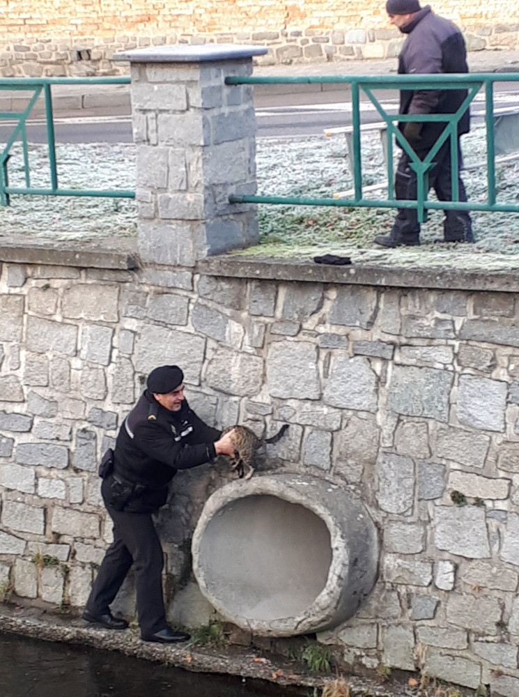 Šternberští městští policisté ve středu 5. prosince zachraňovali kočku, která se nedokázala sama dostat z koryta řeky.