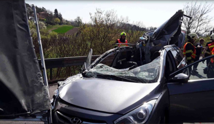 Na dálnici D46 došlo k dopravní nehodě tří osobních aut a náklaďáku, jedna osoba byla zraněna