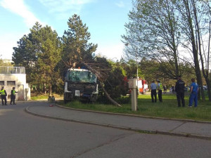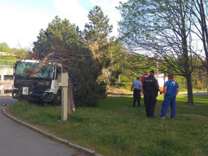 Ve čtvrtek 25. dubna ráno došlo na Brněnské ulici v Olomouci k dopravní nehodě nákladního auta. Řidič s nákladním autem prorazil zábradlí, projel přes koleje a skončil na vedlejší ulici ve stromě.