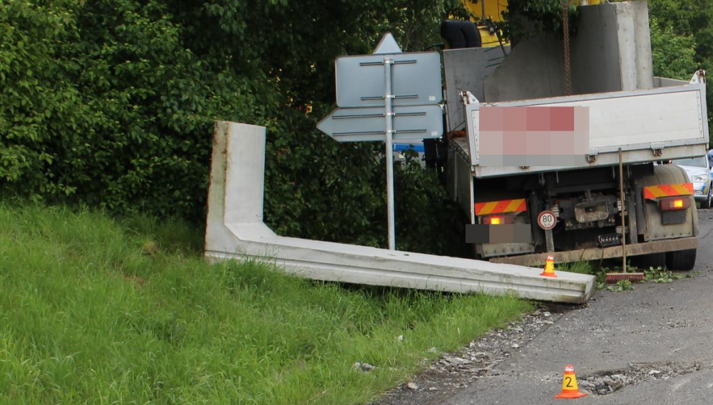 Betonový panel vypadl na silnici, kterou poškodil i s travnatým příkopem. „Alkohol byl u řidiče vyloučen orientační dechovou zkouškou, ke zranění osob nedošlo. Celková hmotná škoda je odhadována na předběžně 36 tisíc korun. Řidiči byla uložena pokuta v příkazním řízení," uvedla policejní mluvčí Irena Urbánková.