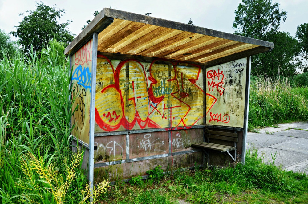 V době z 15. na 16. června poškodil neznámý vandal dvě protilehlé autobusové zastávky u obce Náklo.