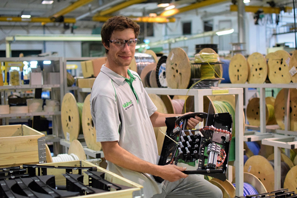 Obdivuju, jak je Pavel zručný a musím se zeptat, jestli má nějaké elektrotechnické vzdělání. Ten se jen zasměje: „Já mám dodělanou jen základku, na střední to nějak neklaplo. A ne, já jsem s elektrikou nikdy nedělal, všechno mě naučili za těch pár týdnů tady. Už teď ale vím, že tu chci vystudovat elektrotechniku, je to jedna z výhod pro zaměstnance. Dvakrát týdně v pracovní době se normálně budu učit na elektromechanika a zaplatí mi to firma!,” říká nadšeně Pavel.