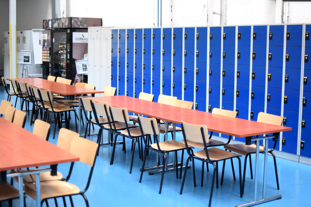 Pavel mne vede přes výrobní halu do útulného odděleného prostoru, kterému se tady mezi lidmi říká bazén, a to hlavně proto, že je laděn do modra, včetně podlahy. „Je to taková oáza klidu. Dáš si tady kafe nebo čas, načepuješ si limošku, pokecáš s ostatními nebo se podíváš na tydlety nástěnky a dozvíš se, co je novýho,” ukazuje Pavel na nástěnku, kde jsou novinky. informace o akcích pro zaměstnance, jako je sportovní den výlet do termálů. Visí tu taky seznam benefitů, zaměstnanci si mohou vybrat od vitamínových balíčků a očkování až po příspěvek na penzijní připojištění.