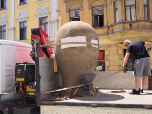 Centrum Olomouce zdobí ode dneška již tři monumentální sochy festivalu Sculpture Line. Po závěsné Euforii ztvárňující dítě sající z prsu a železné Noze v parku přibyla v centru města Jedna z velkých hlaviček Kurta Gebauera. Umístěna je na Dolním náměstí před Galerií města Olomouce, v jejíchž prostorách je až do konce června doprovodná výstava k tomuto mezinárodnímu sochařskému festivalu. Gebauerova socha do Olomouce doputovala z Prahy.