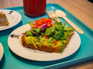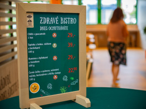 Při zařizování Zdravého bistra mysleli i na možnost odnést si jídlo domů. „I sem jsme promítli naši snahu maximálně omezit jednorázové plasty, proto i tady ve Zdravém bistru chceme mít nádoby z plně recyklovatelného materiálu,” říká paní ředitelka Dvořáková, přičemž ukazuje na hnědé misky, vedle kterých leží i dřevěný příbor či eko brčka.