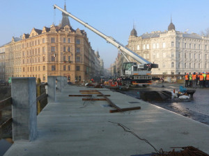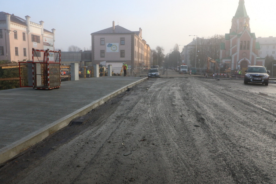 V prosinci se na most v Komenského ulici napojí z vedlejších ulic pouze Husova, aby bylo zajištěno propojení Pasteurovy a Komenského ulice s ulicí 17. listopadu. „Kompletní dokončení všech stavebních prací včetně napojení vedlejších ulic Na Letné, kapitána Nálepky a Sokolovská je naplánováno na duben příštího roku," podotkl Folta.