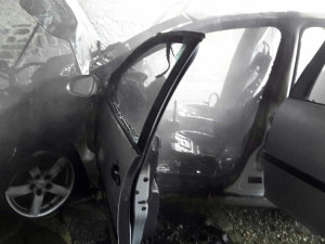 Řidič jel od Olomouce na Hněvotín a vyjel vpravo mimo silnici, kde narazil do betonového pilíře. Po nárazu došlo k požáru motorové části vozidla. Řidič nebyl pod vlivem alkoholu, stačil z auta vystoupit a nebyl zraněn.