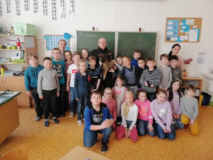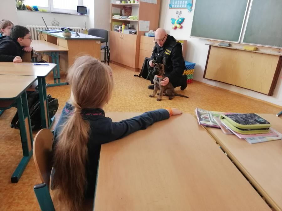 Štítky policie, štěně, psovod, prevence, beseda, škola, , přednáška, Olomouc