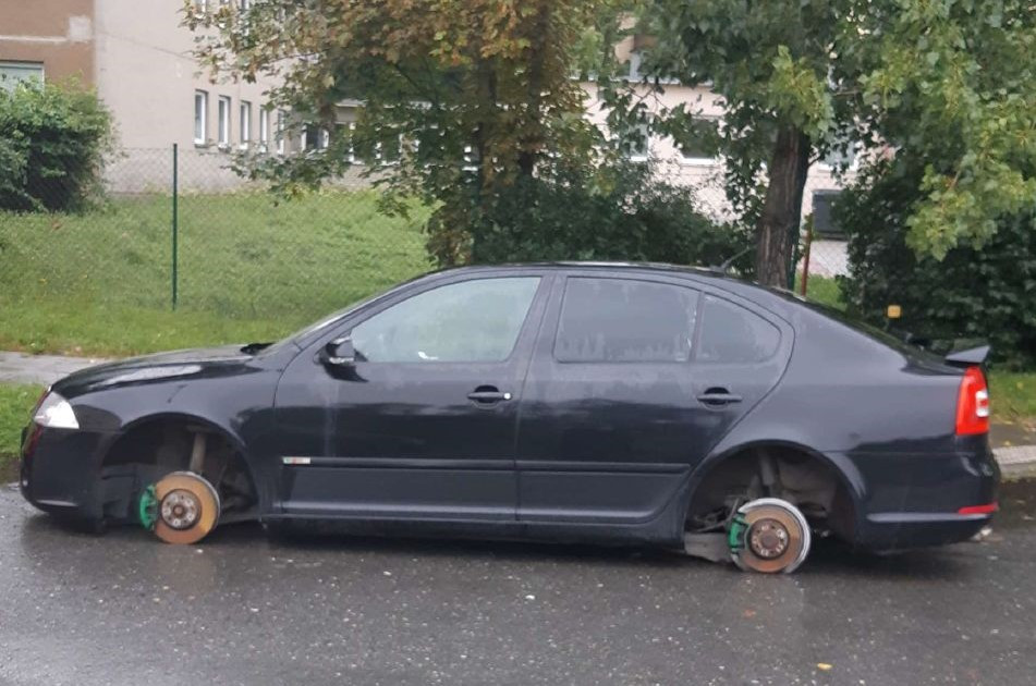 Když v pondělí 3. srpna večer čtyřiatřicetiletý muž zaparkoval své vozidlo Škoda Octavia v Olomouci na ulici U Kovárny, netušil, v jakém stavu své auto následující den ráno najde. Během noci mu neznámý pachatel odcizil všechna čtyři kola.