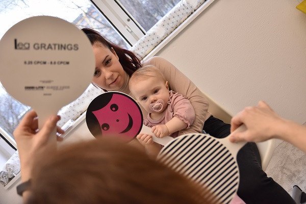 „Jsme schopni vyšetřit dítě prakticky již od narození. Vyšetřujeme i děti s těžkými kombinovanými vadami a děti, které nekomunikují či nespolupracují. I pro děti, které sami nesedí, máme zakoupeny zdravotní polohovací židle v různých velikostech. Zraková laboratoř je vybavena diagnostickými materiály, standardizovanými testy, ale i běžně dostupnými hračkami,“ říká Petra Navrátilová - instruktorka stimulace zraku. Ta zjišťuje ve zrakové laboratoři pomocí testů mimo jiné zrakovou ostrost nebo kontrastní citlivost dítěte.
