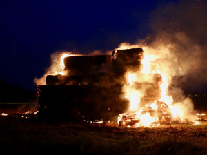 Plameny se ale velmi rychle šířily uvnitř stohu a i přes prvotní snahu o uchránění většího množství balíků došlo vzápětí rozšíření plamenů na celý stoh. Hasiči po projednání následného opatření s vlastníkem stohu zahájili intenzivní hasební práce. Majitel mezitím zajistil těžkou techniku pro pomoc s rozhrabáváním a postupném dohašování. Předpoklad činnosti hasičů je ještě na několik hodin.