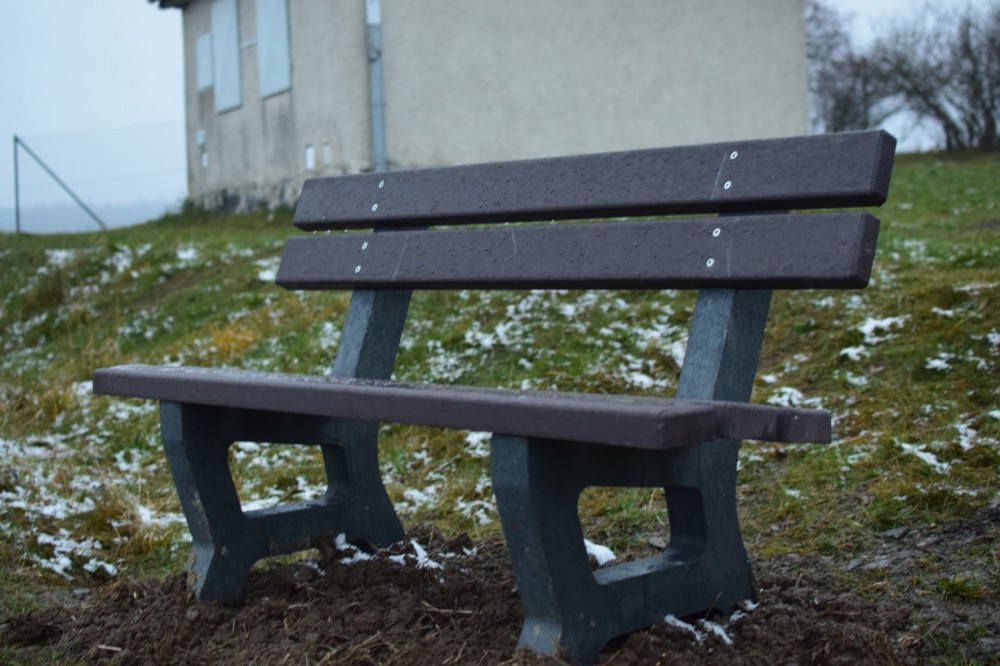 Plastová lavička s opěradlem váží 60 kilogramů a na délku měří 1,5 metru. Výrobek má podle Petříka certifikát zdravotní nezávadnosti a materiál je odolný proti hmyzu i houbám.