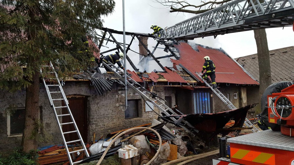 K požáru střechy rodinného domu v Bílé Lhotě na Litovelsku vyjížděli ve středu 10. ledna 2018 po osmé ráno profesionální hasiči z Litovle a dobrovolní hasiči z Bílé Lhoty, Loštic a Bouzova.