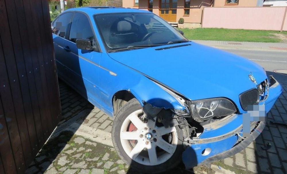K nehodě došlo tak, že čtyřiadvacetiletý řidič BMW dostal v křižovatce smyk, pak narazil do plotu u jednoho domu a poté narazil do brány u dalšího domu. Při nehodě byla zraněna spolujezdkyně a řidič přivolané policejní hlídce nadýchal přes dvě promile.
