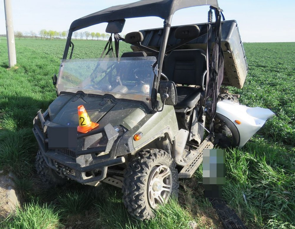 Osobní auto Opel Astra, které řídila dvacetiletá řidička, narazilo v křižovatce do čtyřkolky, na které jel dvaatřicetiletý muž. Po střetu skončila čtyřkolka mimo silnici, kde narazila do dvou dopravních značek a při nehodě došlo ke zranění řidiče čtyřkolky.