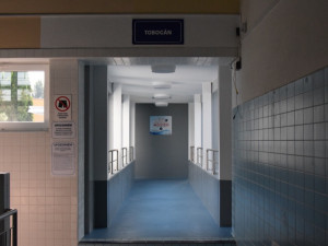 Stavbě nové toboganové věže předcházela na přelomu dubna a května loňského roku demolice té původní. Dělníci tehdy tobogán rozebrali včetně sklolaminátového tubusu. Odbourali také základovou desku betonové podlahy. Důvodem demolice byl havarijní stav konstrukce a vysoký stupeň koroze. „Samotné stavební práce na nové vodní atrakci znamenaly nejen vlastní výstavbu dráhy a věže, ale i dodávky a montáže zařízení pro vytápění, novou vzduchotechniku, dodávku zařízení zdravotně technických instalací, elektroinstalací i úpravu technologie vody k tobogánu a dojezdovému bazénu," doplnila mluvčí radnice Radka Štědrá.