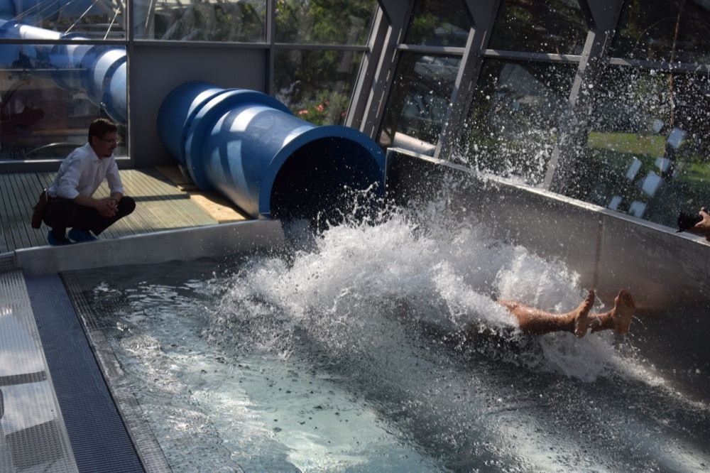„Výstavba nové toboganové věže je další klíčovou etapou postupné modernizace plaveckého stadionu. Délka dráhy toboganu je 77 metrů, výška věže přesně 8,8 metru a sklon má 11,4 procenta," uvedl náměstek primátora Filip Žáček.