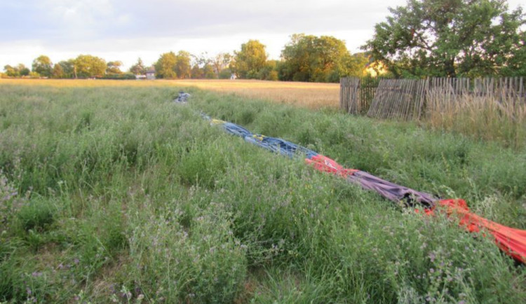 Horkovzdušný balon skončil na zemi po nárazu do střechy domu a elektrického vedení