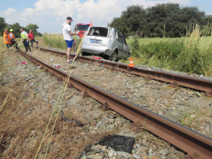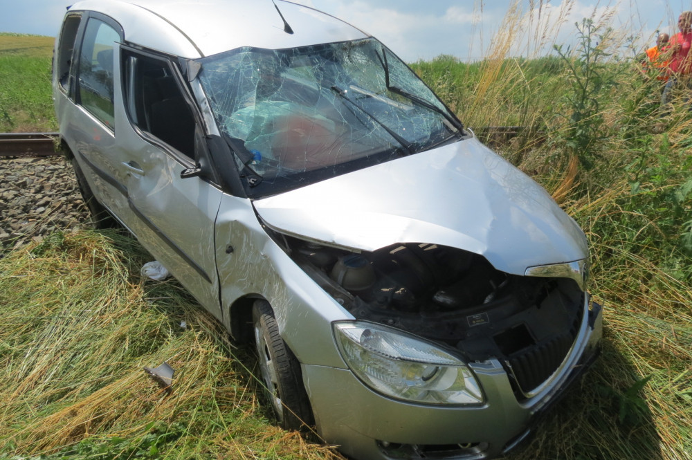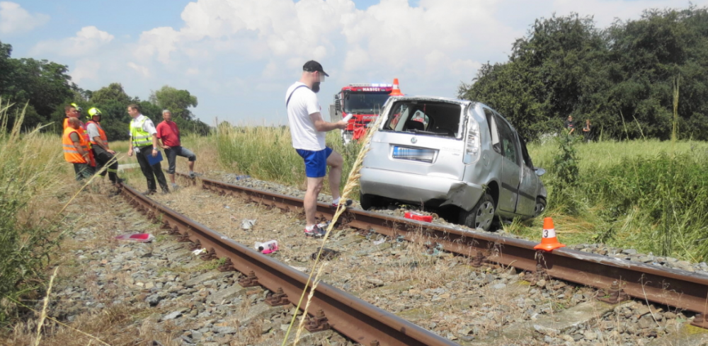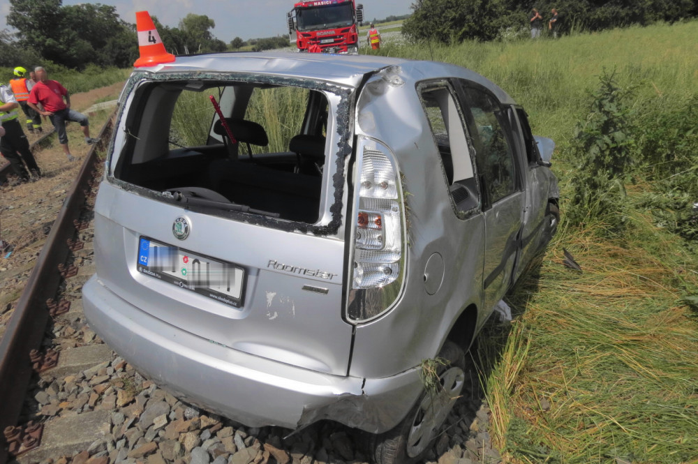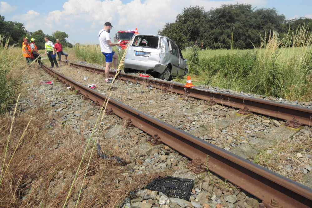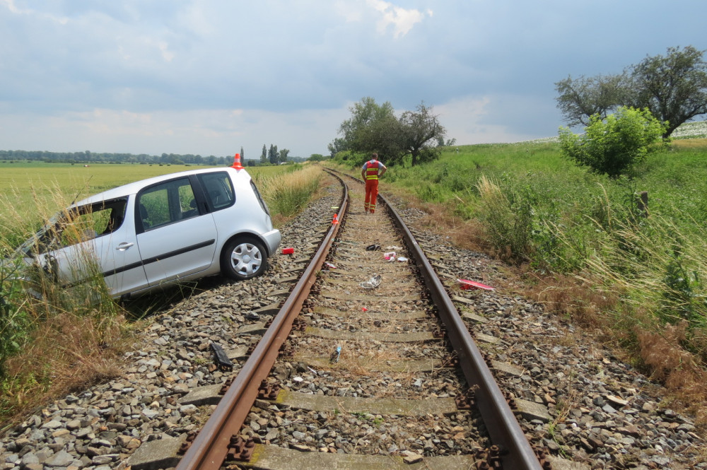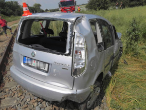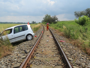 Auto přejelo krajnici, příkop i železniční koleje a za nimi se zastavilo. Jednalo se o málo využívanou železniční trať, která slouží především okolním fabrikám.