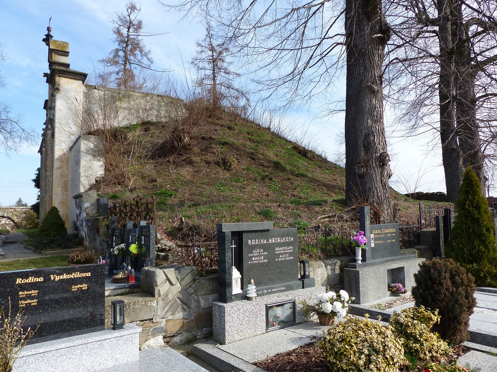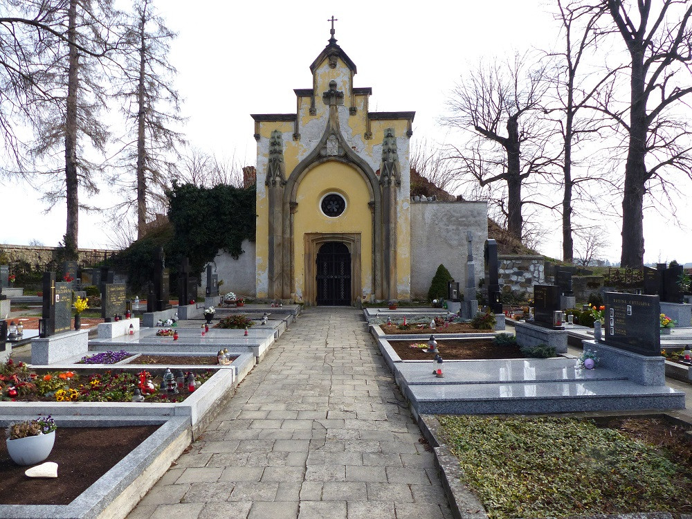 Na seznam památek se společně s hrobkou dostal i nedaleko stojící pískovcový kříž se sochou ukřižovaného Krista z roku 1879. Drobná sakrální památka, která je však druhou nejvýraznější stavbou hřbitova, je podle odborníků příkladem kvalitní uměleckořemeslné produkce. Zařazení hrobky i kříže na seznam památek pomůže podle Staňka vlastníkům získat různé dotace, a tím může přispět k jejich opravám.