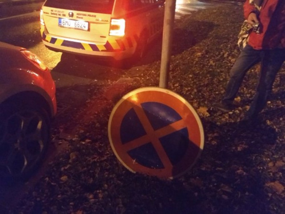 Policisté si v sobotu krátce před čtvrtou hodinou ranní všimli muže, který klečel u dopravní značky zakazující odbočení. Strážníci zjistili, že má u sebe dopravní značku "Zákaz zastavení" a společně s ní i klíč a další věci potřebné k uchycení značky.