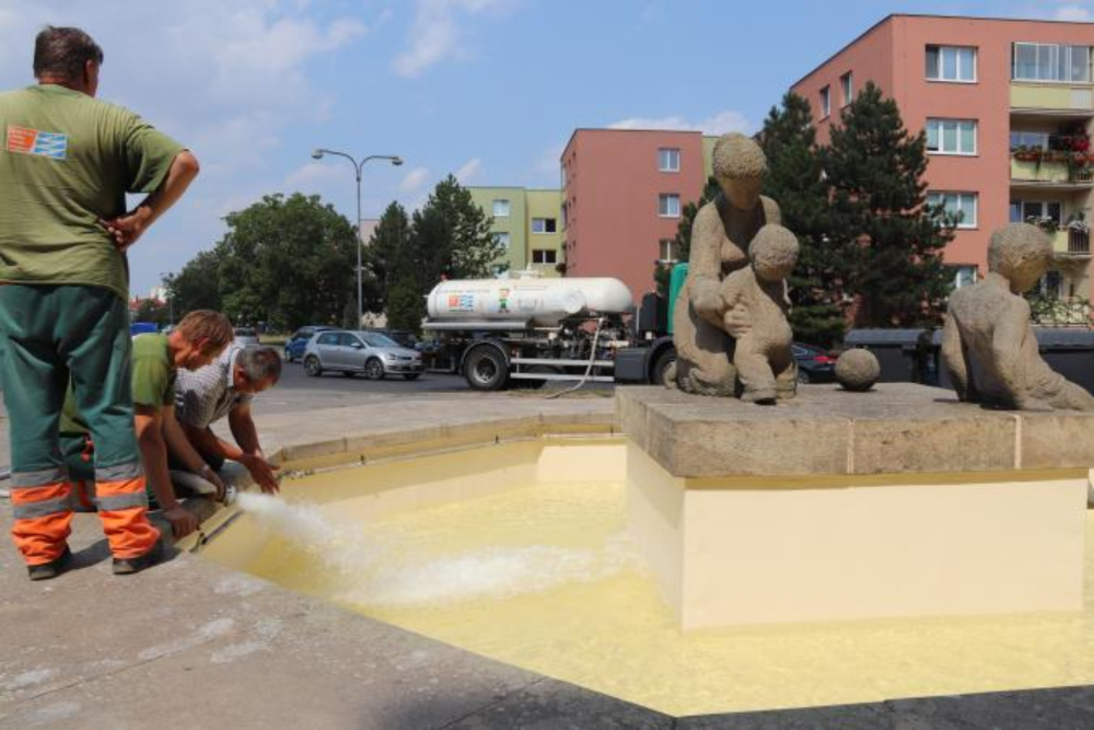 Kašna v ulici Pod Valy je podle mluvčí radnice jednou z pěti přerovských fontán. Postavena byla v roce 1990 a jejím autorem je akademický sochař Bohumil Teplý. Kašna je součástí panelového sídliště, výhled odtud je ale i na městkou památkovou zónu, jejíž součástí jsou hradby a zámek. V současném horkém létě se mohou lidé osvěžit také v kašně na Masarykově náměstí, v ulici Komenského, v parku Michalov a před Přerovankou v Kratochvílově ulici, dodala Chalupová.