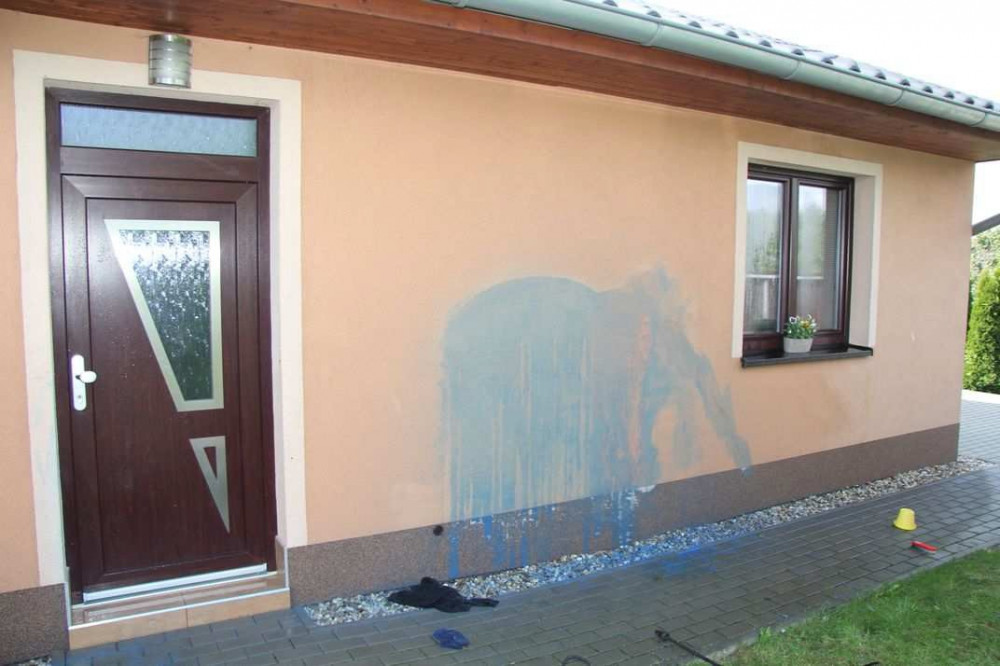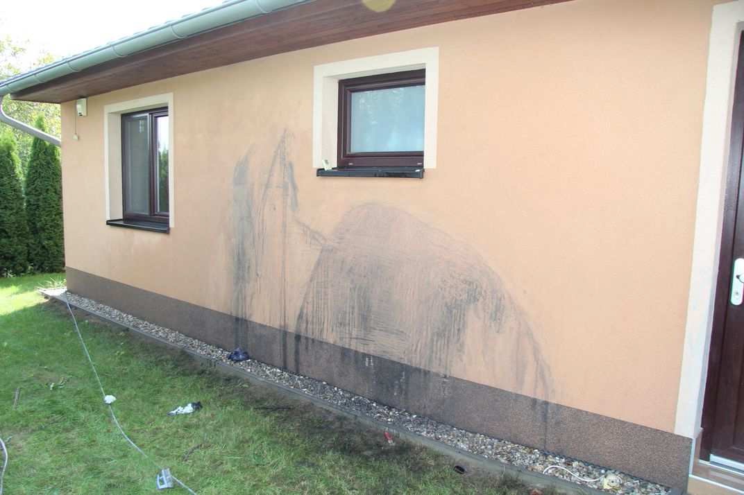 V noci na sobotu 15. září polil neznámý pachatel fasádu, dlažbu i vstupní dveře domu v Lověšicích. Poškozený škodu předběžně vyčíslil na 100 tisíc korun. Ve věci jsme zahájili úkony trestního řízení pro trestný čin poškození cizí věci a trestný čin porušování domovní svobody s dvouletou trestní sazbou odnětí svobody, uvedla policejní mluvčí Miluše Zajícová.