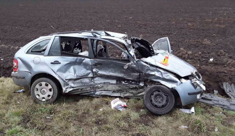 FOTO: U Kralic na Hané se střetla dvě osobní auta, pro zraněné musel i záchranářský vrtulník